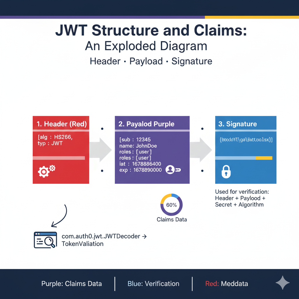 JWT.require(): Initiates the verification process with the expected algorithm.withIssuer(),withAudience(), etc.: Specify expected claims for validation. Mismatches will cause verification to fail.verify(): Performs the actual verification. If successful, returns aDecodedJWTobject; otherwise, throws aJWTVerificationException.