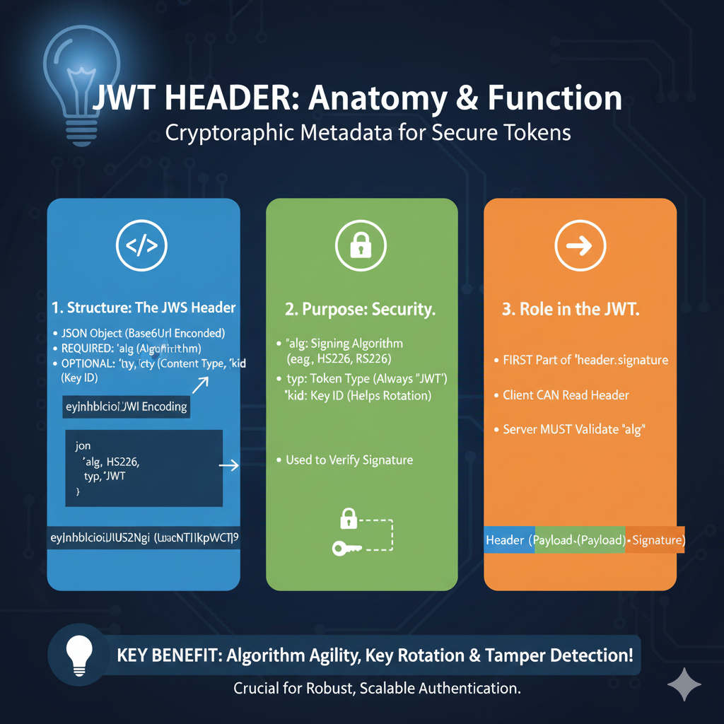 - Algorithm Negotiation: It reads the alg field to know which key to use for the signature.